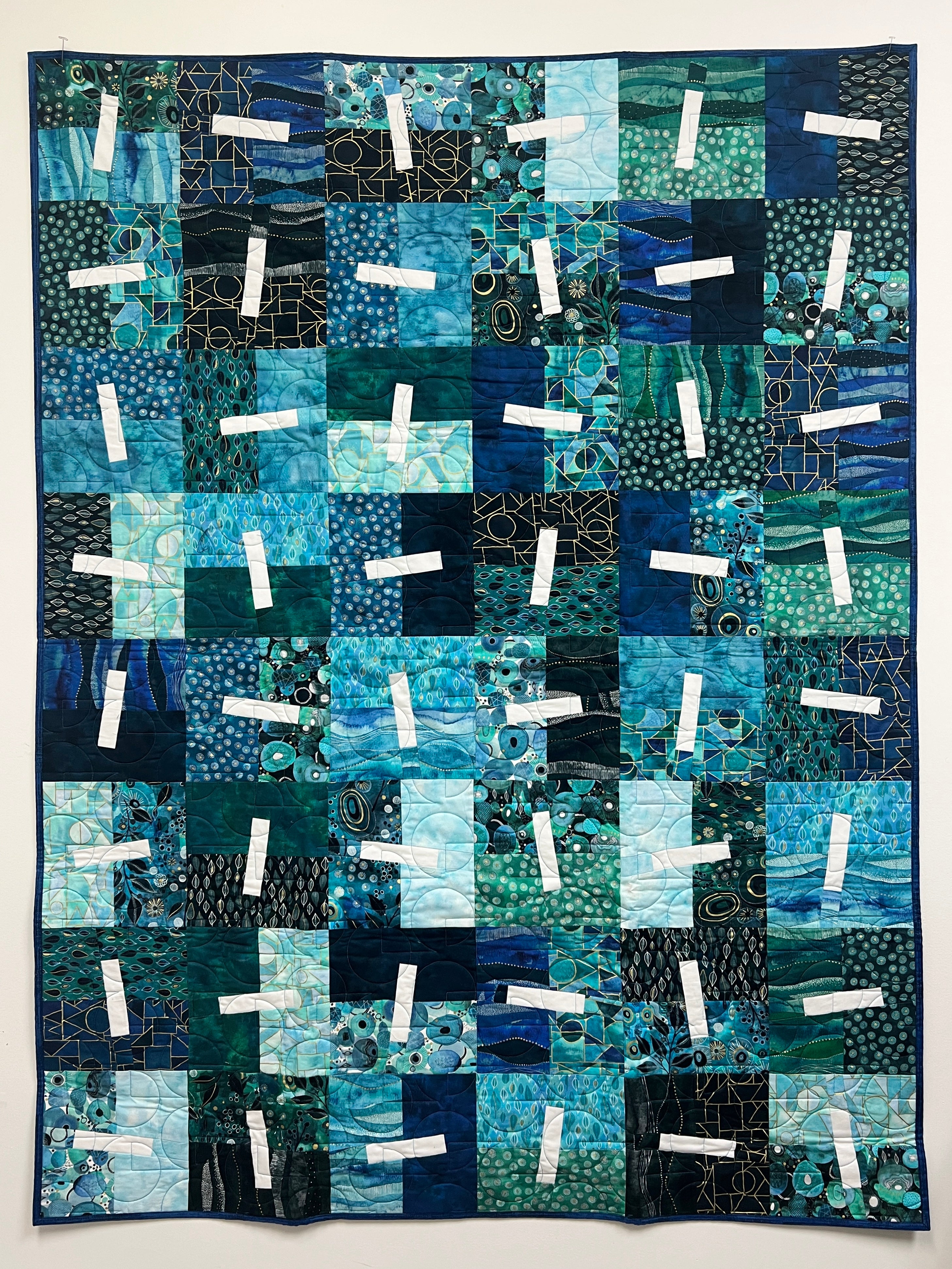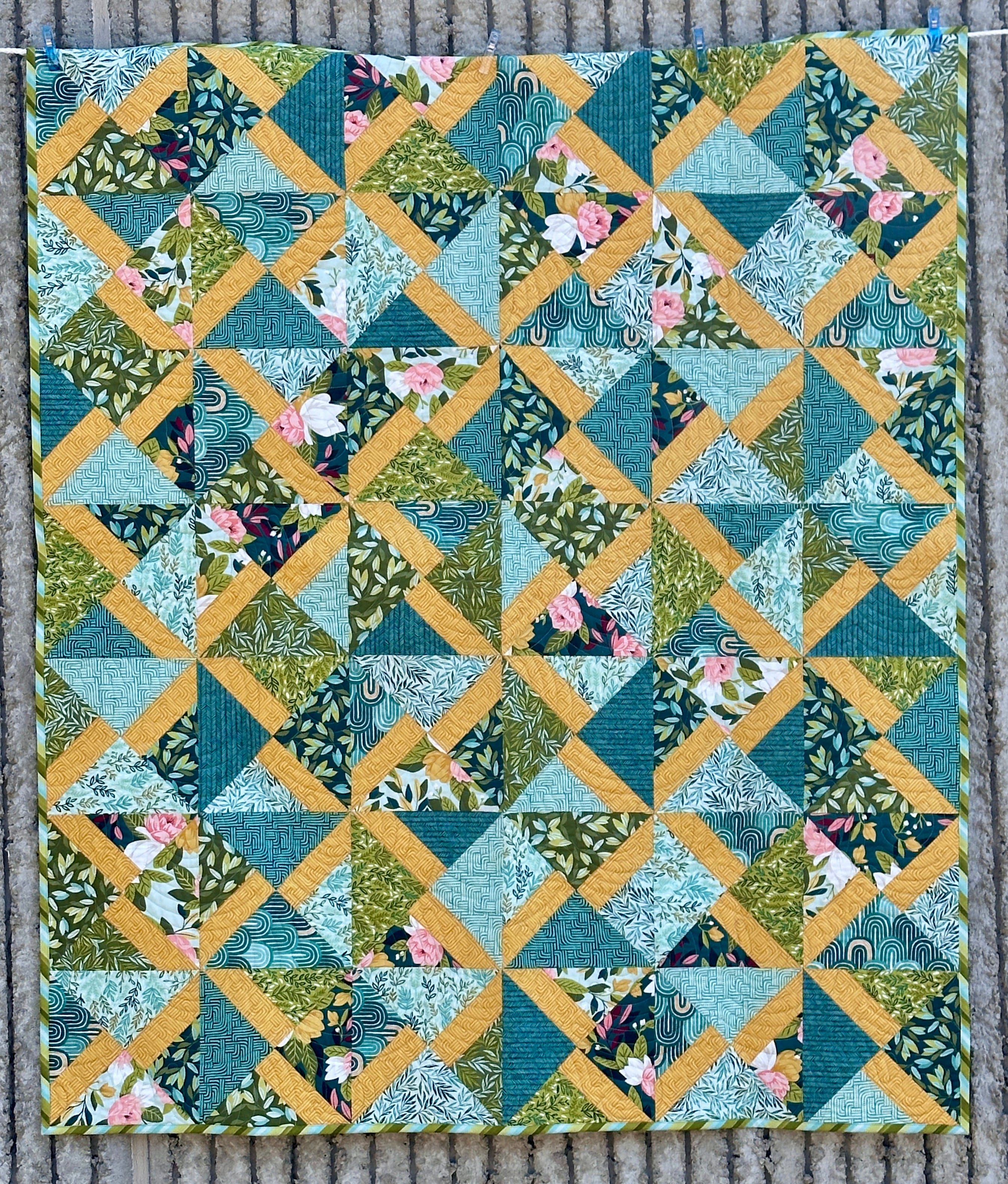 Nellie features dynamic, angled units that come together to create a striking cascade of leaf-like shapes. Instead of relying on squares, Nellie uses clever cutting and simple piecing to create movement and texture across the quilt. Perfect for showing off prints and creating a fresh, contemporary design with your 10" squares.