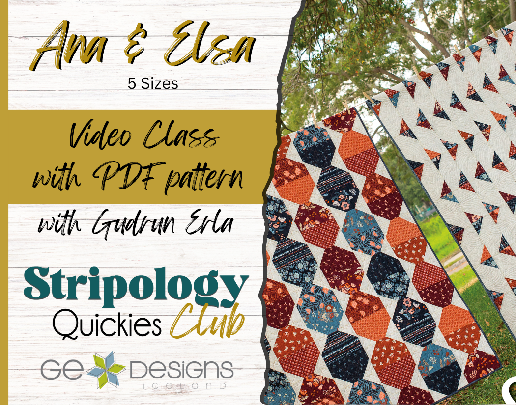 Join Gudrun Erla in a video class designed to help you confidently complete a beautiful quilt from the Stripology Quickies Club. Each class follows a structured, step-by-step format similar to Gudrunâs popular Sew-Alongs, featuring clear guidance on fabric prep, cutting, sewing, layout, and finishing techniques. Gudrun teaches each project using both Stripology rulers and standard rulers, so you can follow along with whichever tools you have on hand.
