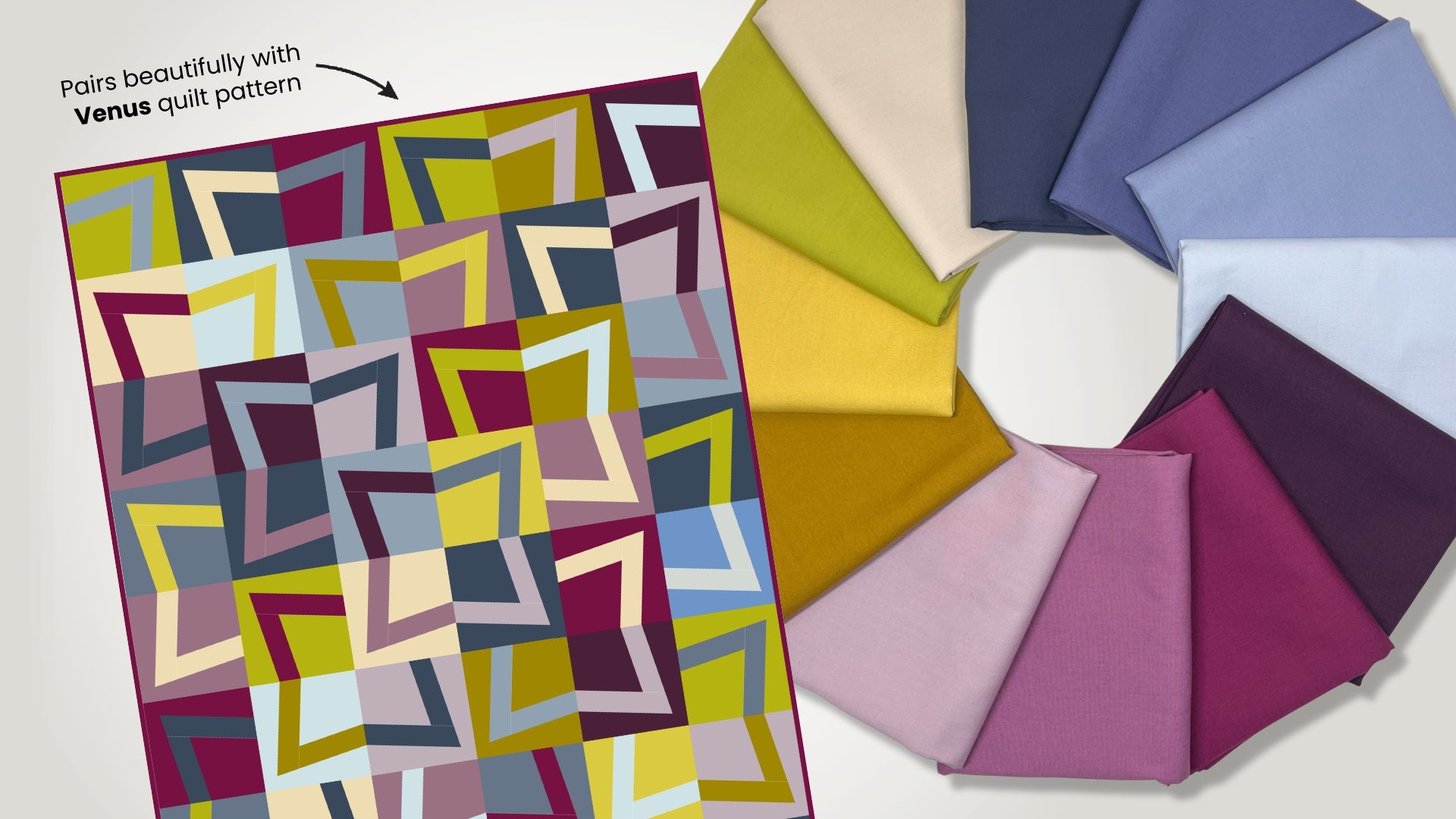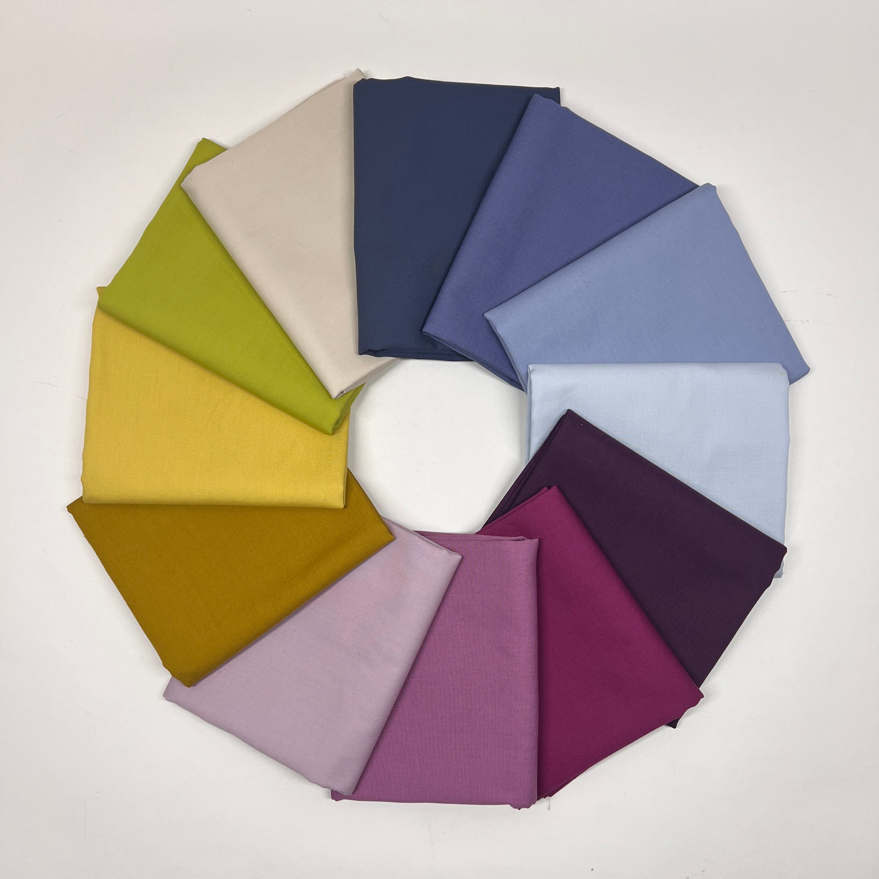 This beautifully curated Century Solids half yard bundle by Andover Fabrics features 12 rich, modern solid colors that work effortlessly together. From soft neutrals and cool blues to warm golden tones and deep berry hues, this palette offers a balanced mix that’s perfect for both bold statement quilts and elegant, understated projects.