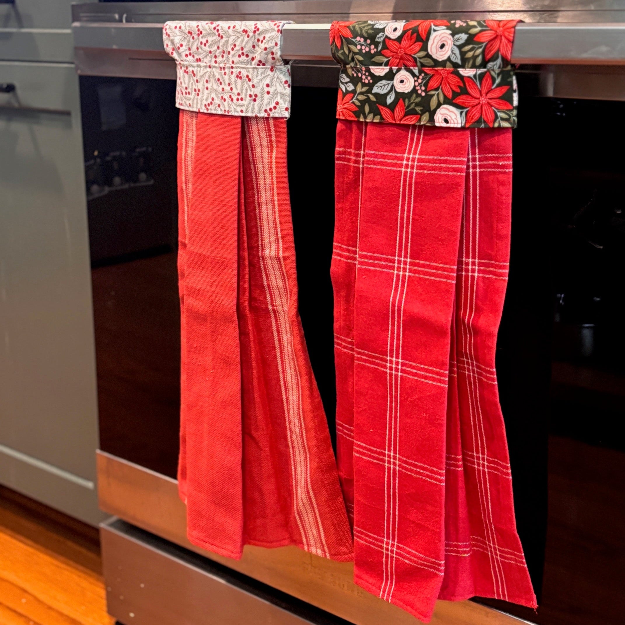 A full step-by-step tutorial for making these towels is available on the April 29, 2024 Tipsy Tuesday, making this a fun and approachable project for beginners and experienced sewists alike. The finished towels look lovely displayed on an oven handle and also make wonderful handmade gifts for friends, neighbors, teachers, or hosts.