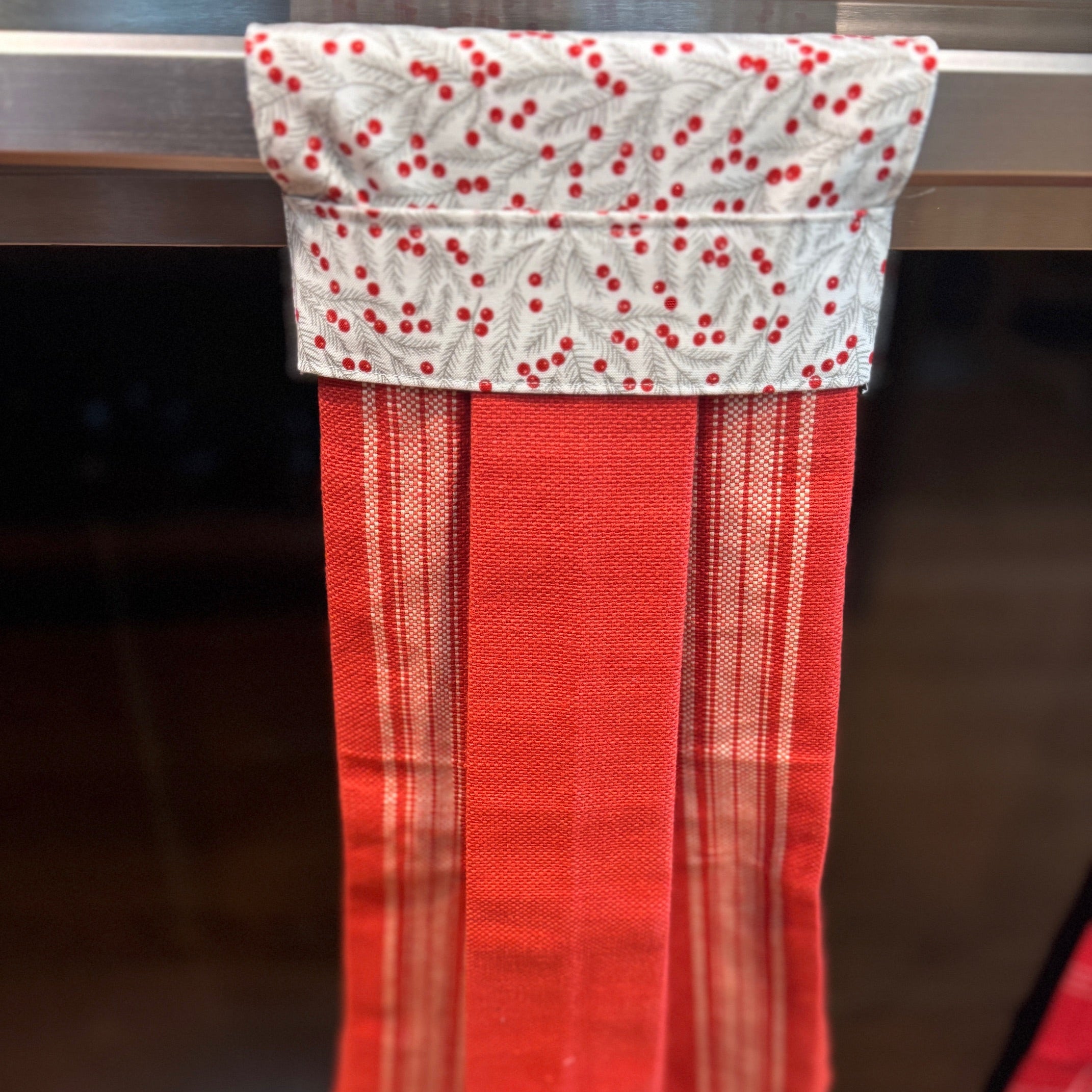 Add a cheerful handmade touch to your kitchen—or create thoughtful gifts—with this Hanging Towel Kit! This kit includes four high-quality toweling cuts in classic holiday reds along with coordinating accent fabrics for the decorative tops, making it easy to create a pair of beautiful hanging towels just like the samples shown.