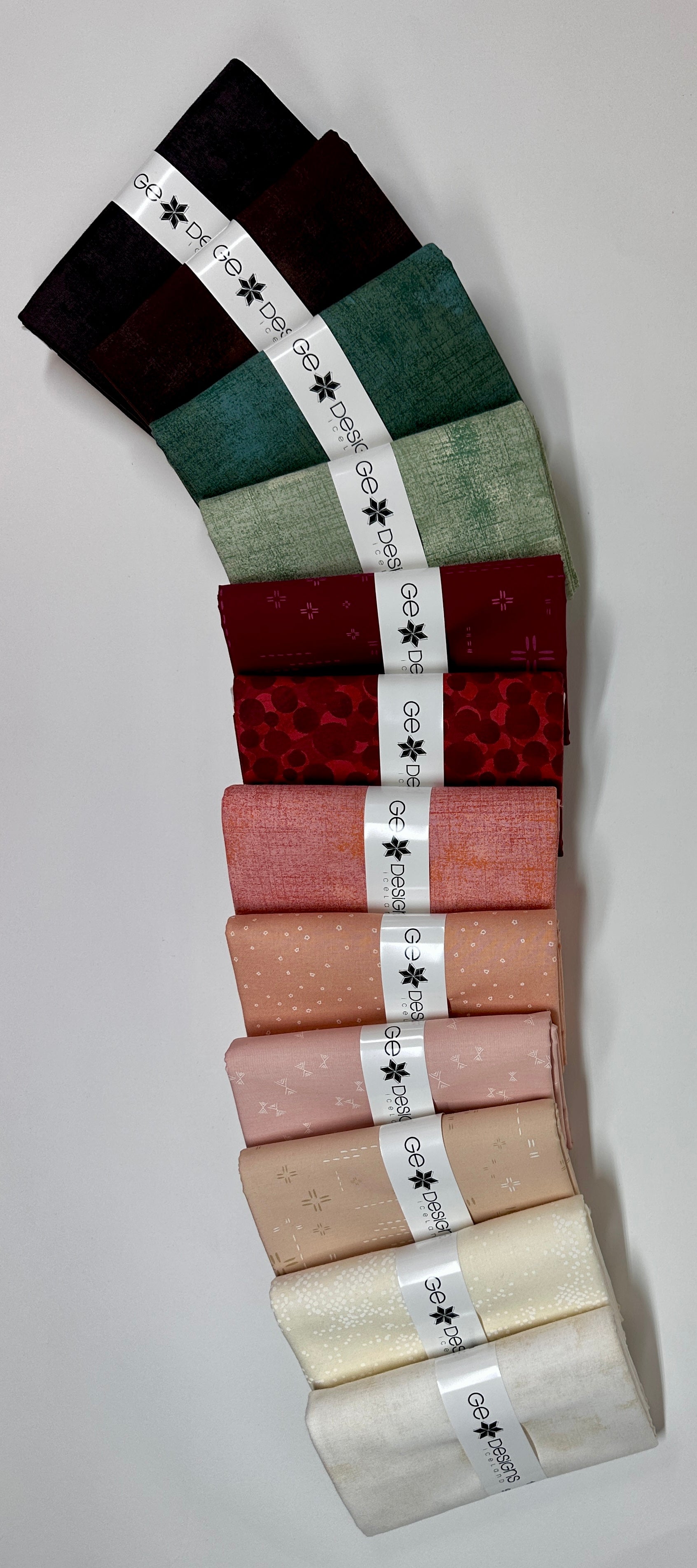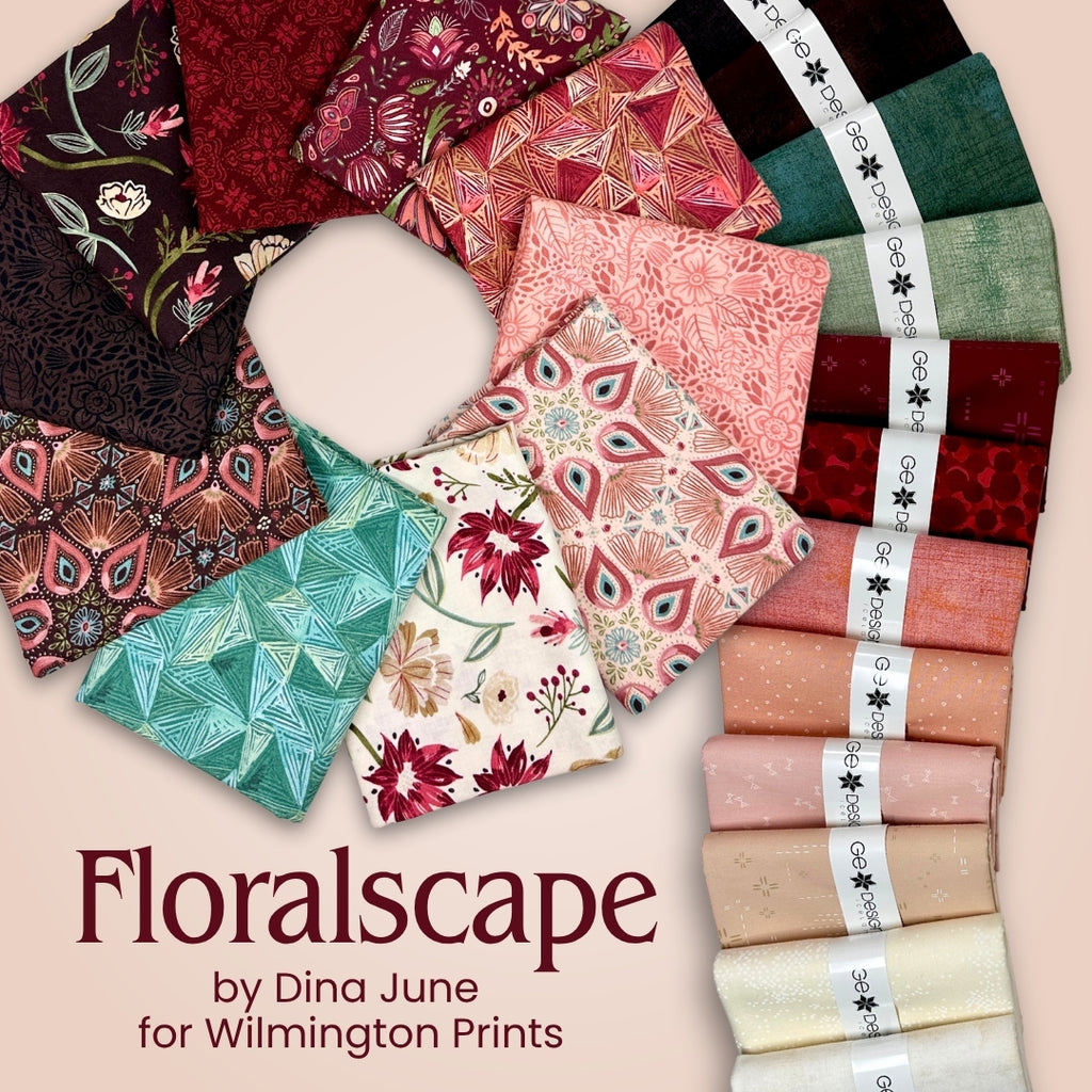 Step into a lush garden of elegance with Floralscape by Dina June for Wilmington Prints. This 10-piece half yard bundle weaves together bold florals, intricate geometric patterns, and delicate textures in a rich palette of burgundy, rose, blush, jade, and earthy browns.