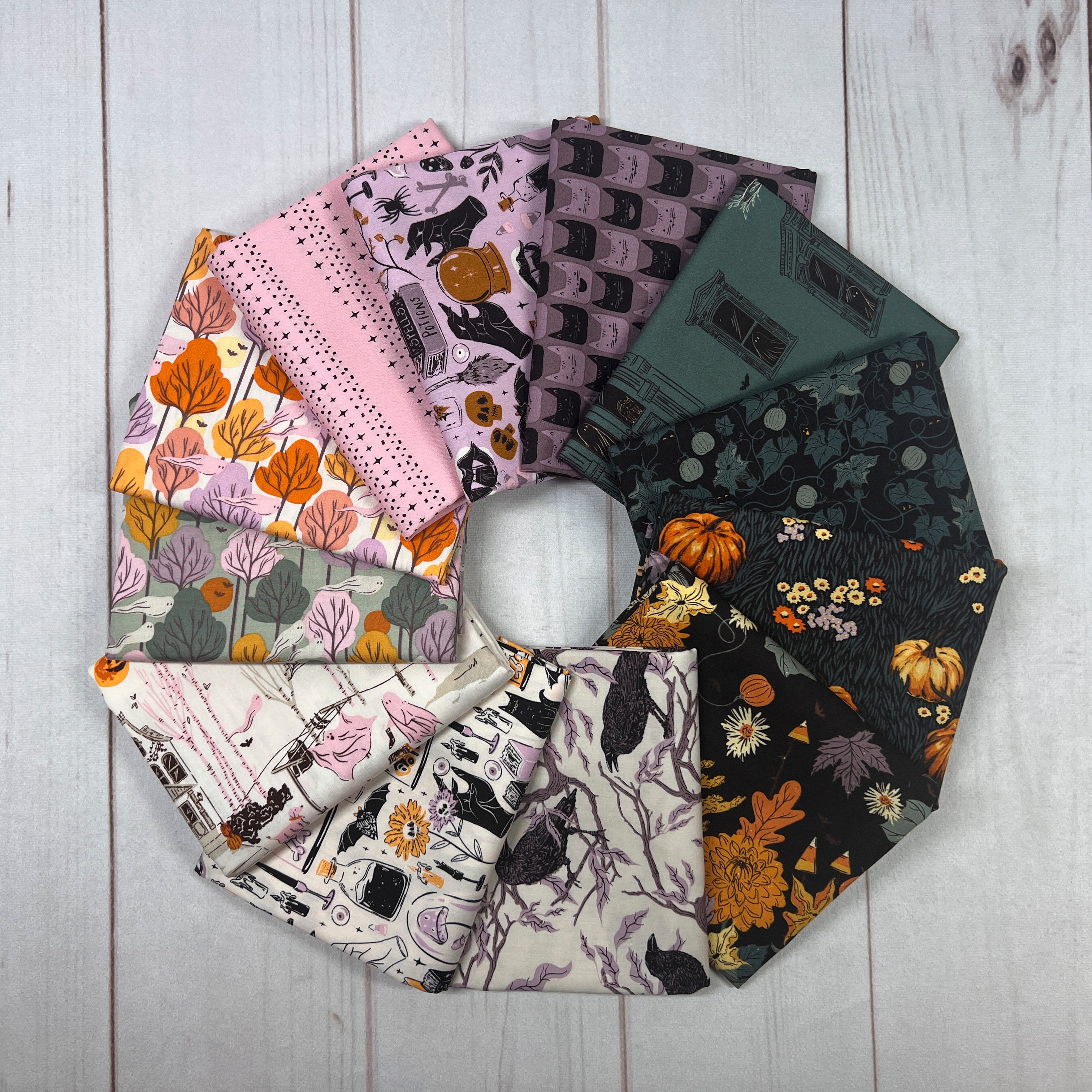 Dare to sew something spellbinding with the Ghostly & Haunted 12-piece half yard bundle from Art Gallery Fabrics. This stunning collection blends vintage Halloween charm with modern elegance, featuring richly illustrated prints, hauntingly beautiful florals, and mystical motifs that feel both eerie and enchanting.