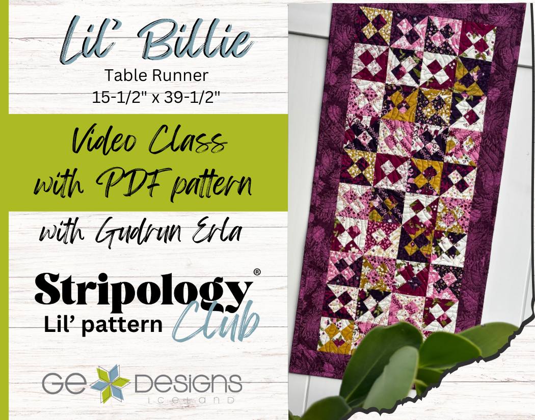 Join Gudrun in making the Lil' Billie Table Runner from the Stripology Lil' Patterns Club, with this instructional video class. Gudrun will teach you new tips, tricks, and techniques, help with cutting and staying organized as you sew. Gudrun will take you through all the steps of putting the table runner together, including cutting, sewing and quilting suggestions.