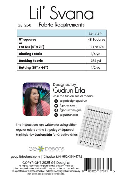 Introducing Lil’ Svana, a fresh and modern design in our Lil’ Pattern Collection! Just like the others in this series, Lil’ Svana is made with 5" squares, making it lil' bundle friendly and scrap-basket perfect.