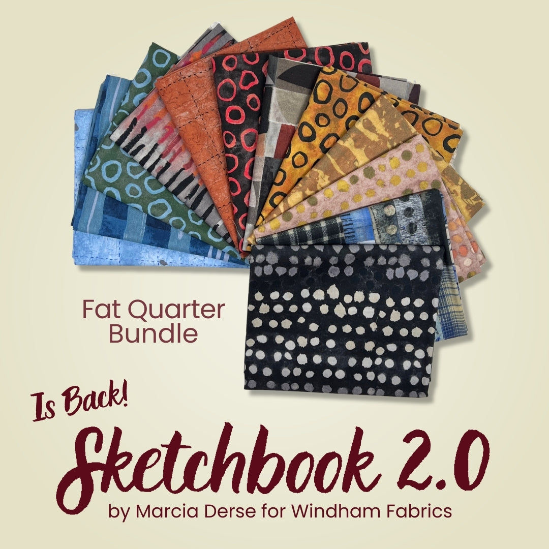 Unleash your inner artist with Sketchbook 2.0 by Marcia Derse for Windham Fabrics - a striking 12-piece fat quarter bundle inspired by raw creativity and spontaneous design. Bursting with hand-drawn textures, abstract shapes, and painterly marks, this collection celebrates the freedom of the sketchbook in rich, earthy tones and layered hues.