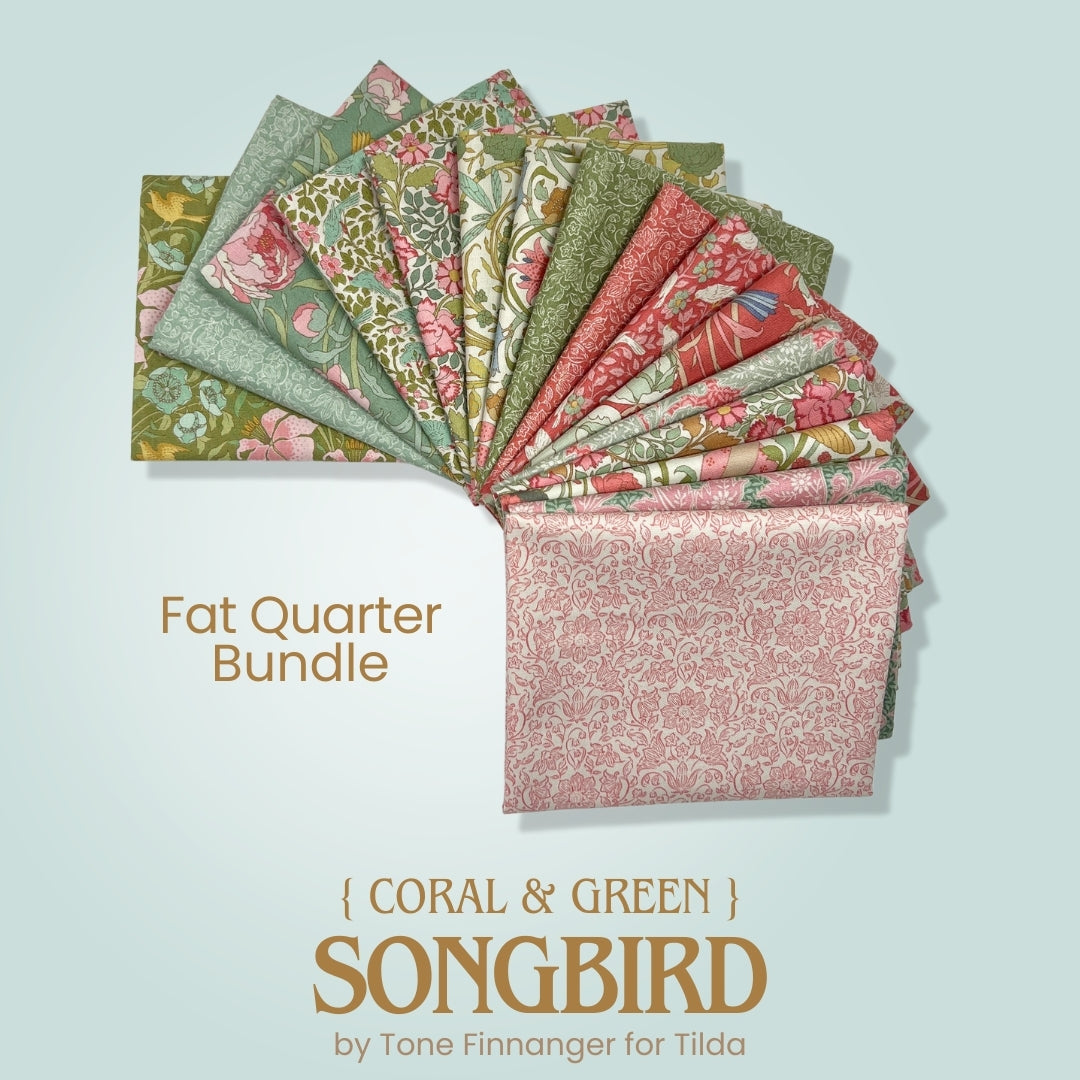 Bring the charm of an English garden into your sewing room with the Songbird Coral and Green Fat Quarter Bundle by Tilda.