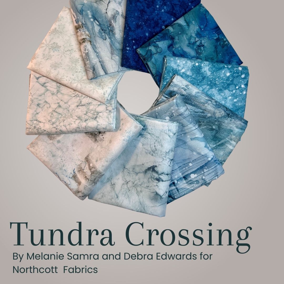 Journey into the serene beauty of the frozen north with the Tundra Crossing collection by Deborah Edwards and Melanie Samra for Northcott Fabrics. This 10-piece half yard bundle showcases a breathtaking palette of icy whites, frosty grays, and deep arctic blues with painterly textures and marble-like effects.