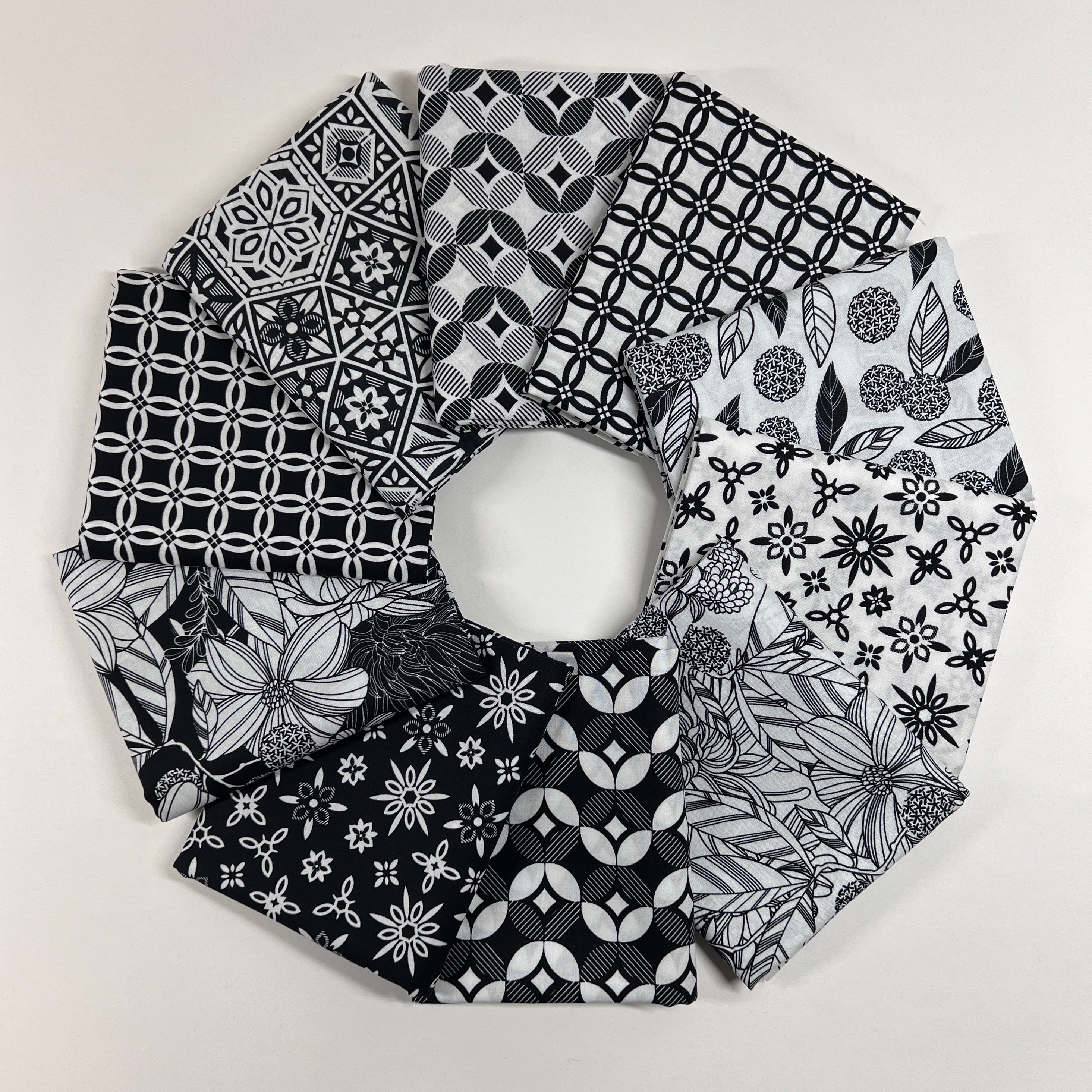 Step into a world of timeless elegance with Garden at Twilight, a striking black-and-white collection designed by Julie Lynch for QT Fabrics. This 10-piece half-yard bundle combines bold florals, geometric patterns, and delicate botanicals, creating a stunning balance of modern style and classic charm.