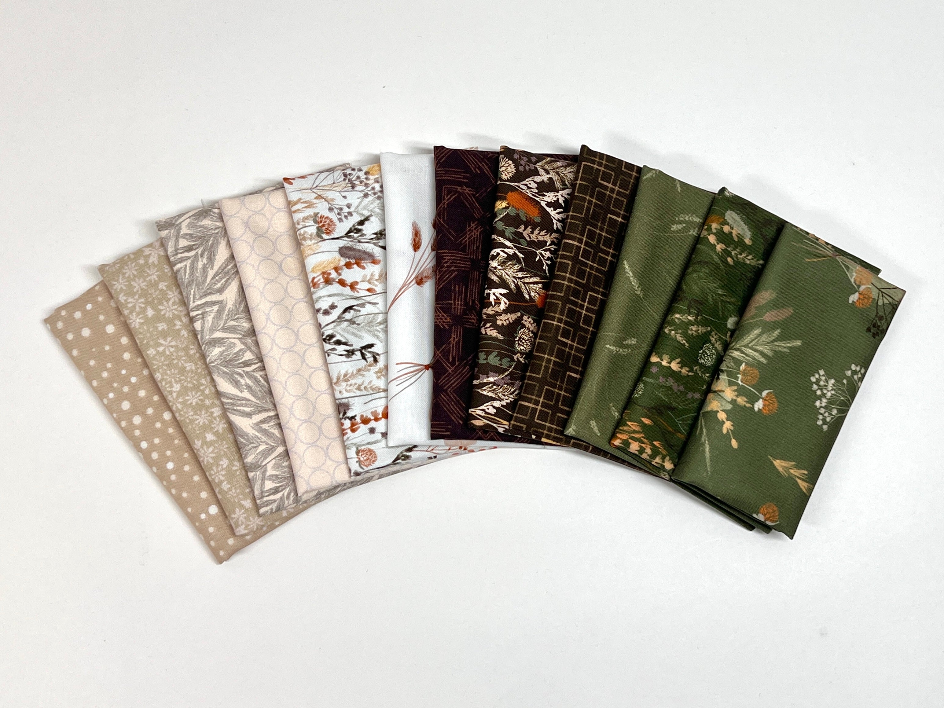 The Whispering Grasslands Lil' Bundle includes 12- 6"x21" cuts of fabric from the Whispering Grasslands collection by Gabrielle Neil for Camelot Fabrics to create any GE Designs Lil' Table Runner. The lil bundle does not include fabric for 1/4 yard of binding.
