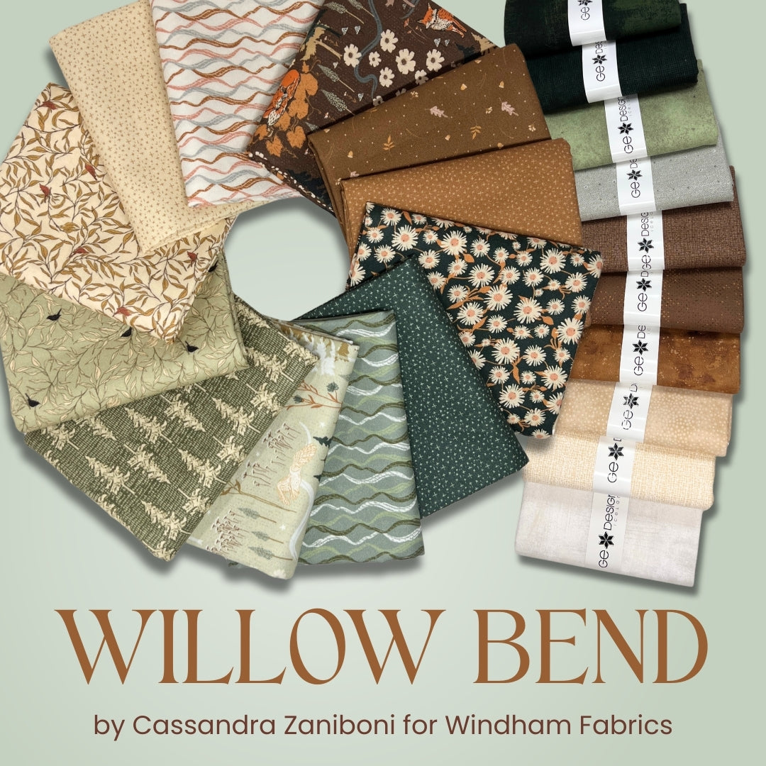 Bring the calm and beauty of the natural world into your sewing projects with the Willow Bend collection by Cassandra Zaniboni for Windham Fabrics. This 12-piece half yard bundle is filled with earthy greens, warm browns, and soft neutrals, balanced with timeless florals, leafy botanicals, and gentle textures that capture the serenity of nature.